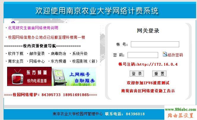 这时随便打开一个网页即可看到只有在图书馆、机房才能看到熟悉的界面了。至此,一个口即可解决多人使用校园网的问题。同理,在教四楼、教学楼、图书馆也适用。(只不过在以上地方没必要带着个路由去上网- -)