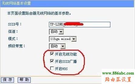 无线参数-基本设置-SSID号:任意取名——勾选开启无线功能-允许SSID广播——开启安全设置——自己设置密码。