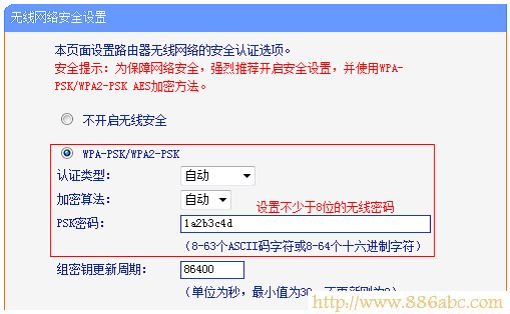 温馨提示:PSK密码,指的是无线网络的密码,请用字母、数字、大小写组合设置,长度大于8位。