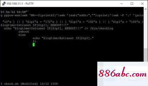8,我们只是把脚本放在路由宝上。这个脚本的功能是检测IP的Intranet和Extranet,如果是内部网络,启动它。接下来,让我们执行脚本2分钟。输入:crontab -e回车