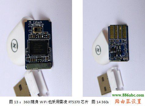 外观方面,小度WiFi感觉最小,也很时尚,360随身WiFi也不错;COMFAST WiFi个头明显比小度WiFi和360随身WiFi要大很多。拆解后的硬件品质小度WiFi最强,MediaTekMT7601芯片55纳米工艺最先进,由此也带来了更强的信号、更快的上传下载速度、更低的功耗及热量,更加稳定。360随身WiFi与COMFAST WiFi采用同样的雷凌5370芯片平台,整体上比小度WiFi差了一大截,在实际使用测试中完全印证了这一点。
