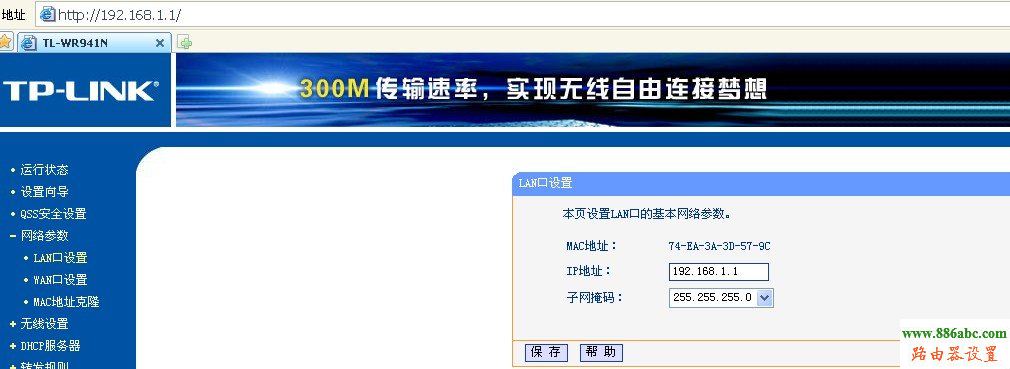 6. 点左侧网络参数-----点LAN设置------在IP地址输入“192.168.1.1”-------子网掩码中输入“255.255.255.0”-------点保存